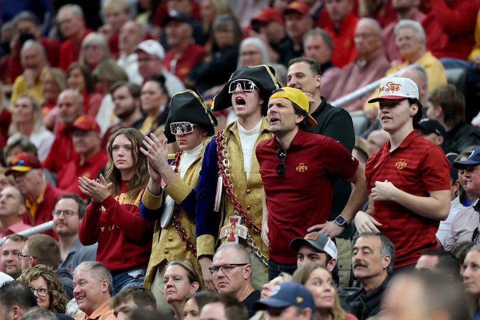 Iowa State Cyclones fans cheer against the Kentucky Wildcats during the first half in the second round of the 2026 NCAA Men’s Basketball Tournament at Enterprise Center on March 22, 2026 in St Louis, Missouri.