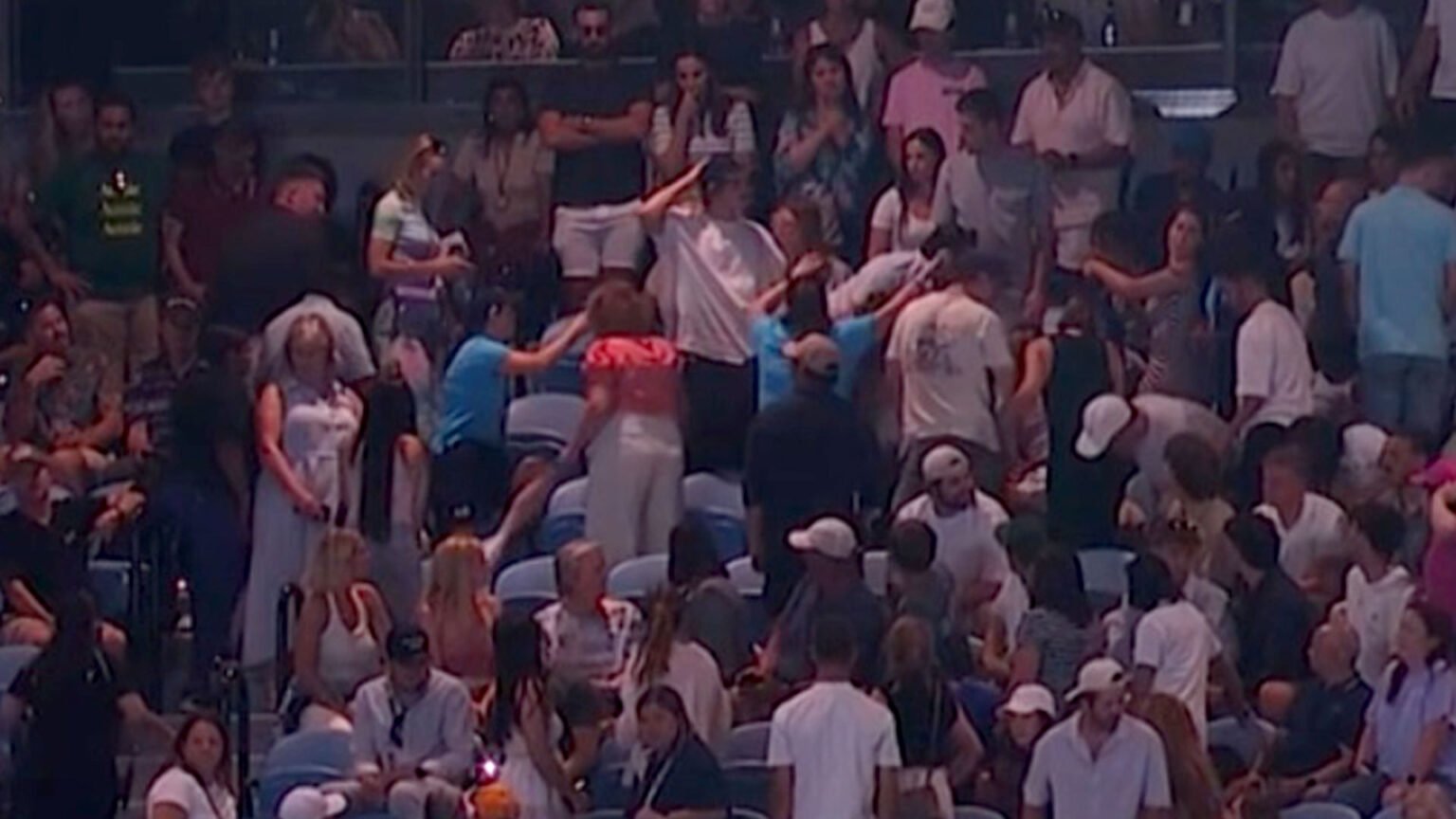 Paramedics were seen walking to the top of a stand in the Rod Laver Arena.