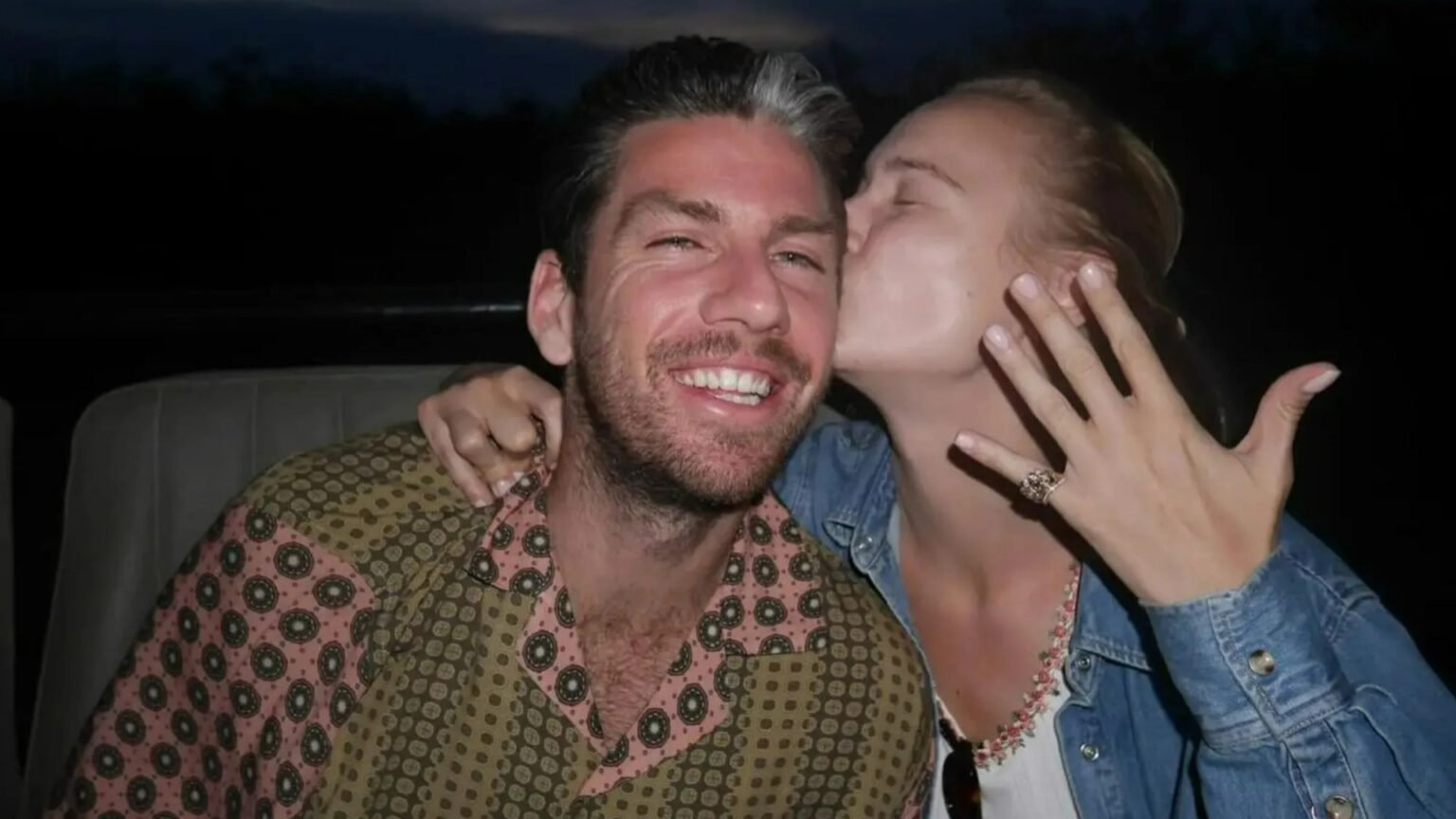 They posted a string of eight photos, highlighted by a beaming Louise showing off her ring before kissing her man on the cheek.