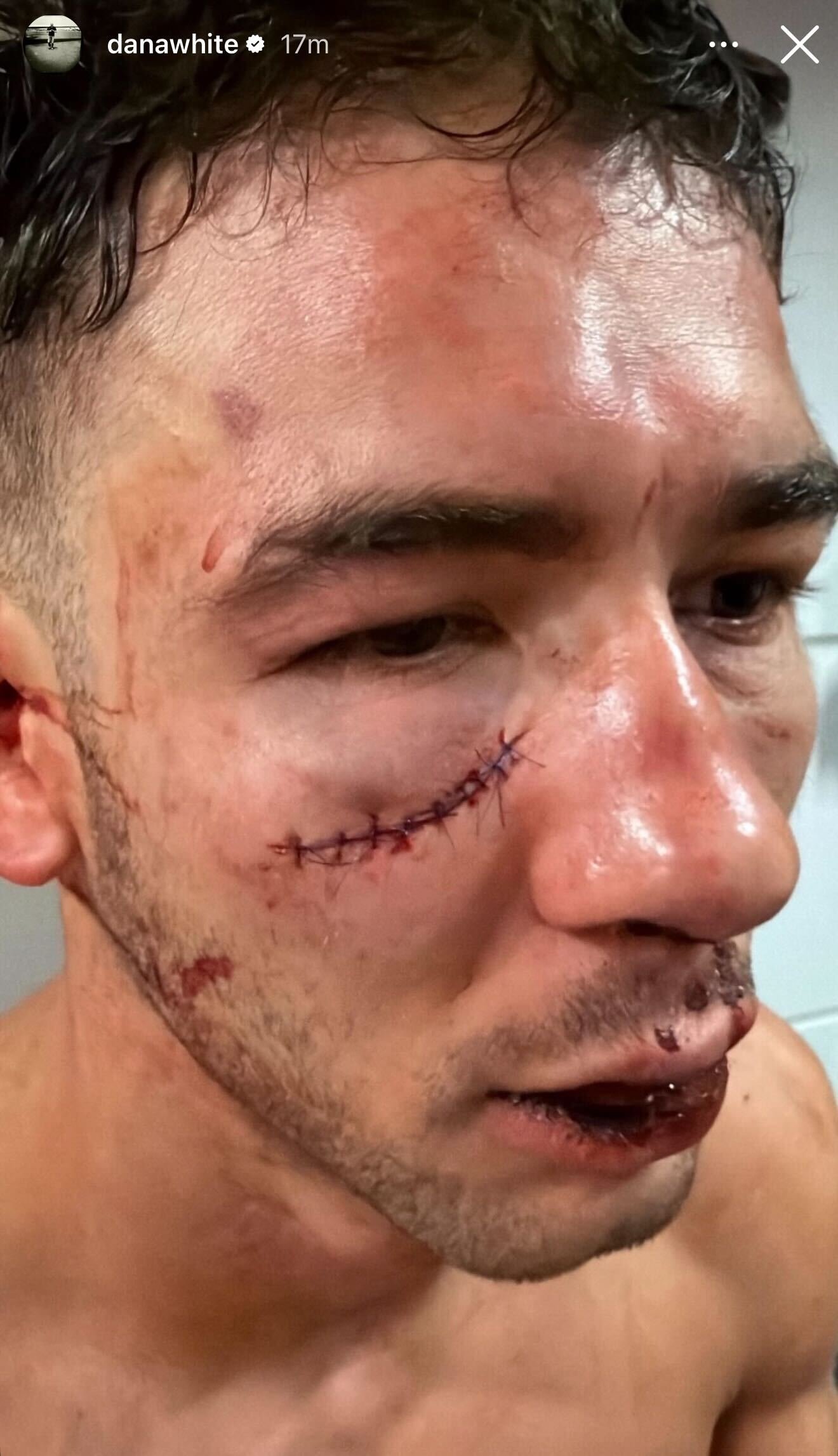 After the bout, UFC CEO Dana White decided to share — as he typically does in these types of situations — the before and after of the medical care Sola received following the all-out war with Jones.
