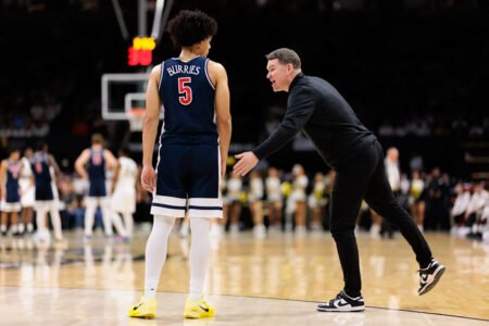 With 6:06 left, Bullock was called for a flagrant foul against Arkansas’ DJ Wagner. Wagner split the free throws and the Razorbacks converted on the ensuing possession with another alley-oop dunk by Brazile to make it 86-63.