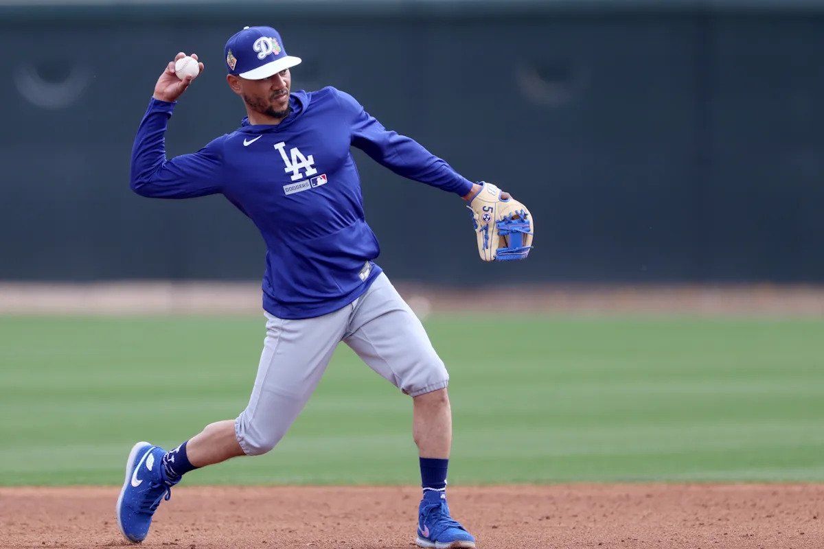 The Dodgers take on the Angels on Sunday at Camelback Ranch. Here are the Dodgers’ active players for their 10th game of Cactus League play, including Mookie Betts playing in his first game, batting third and playing shortstop.