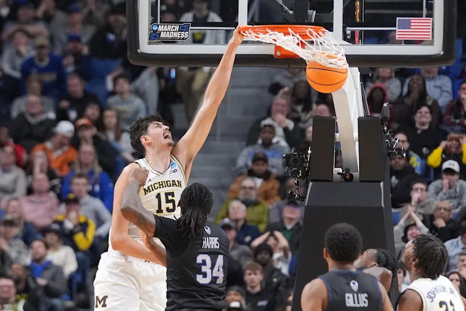 This Michigan team, in contrast, bullies opponents and starts a frontcourt that goes like this: 6-9. 6-9. 7-3.