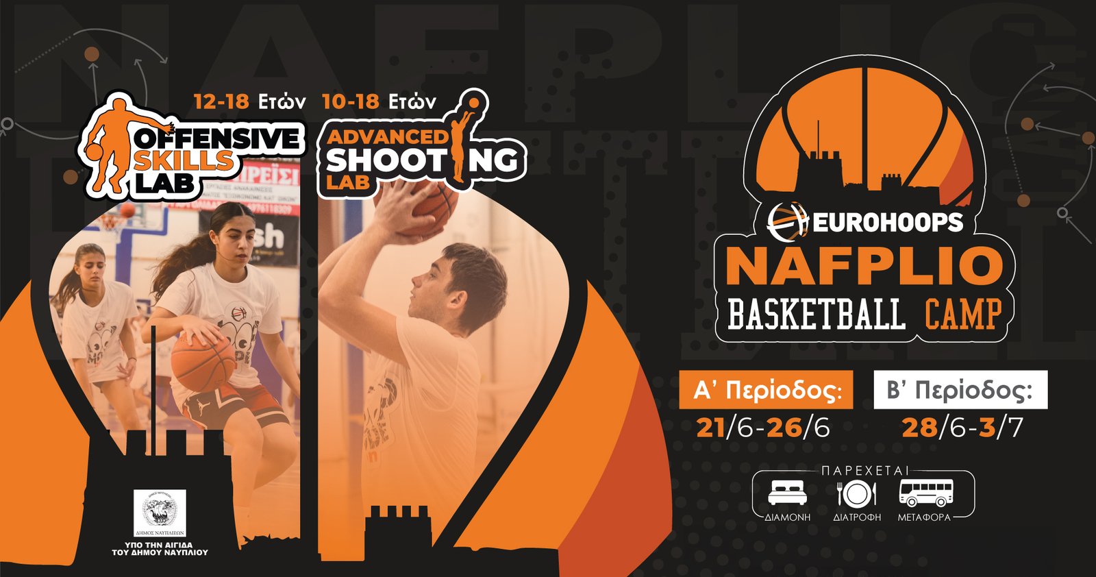 Μετά την επιτυχημένη πρώτη διοργάνωση το καλοκαίρι του 2025, το Eurohoops Nafplio Basketball Camp επιστρέφει δυναμικά για δεύτερη χρονιά, φέρνοντας ξανά στο Ναύπλιο τα εξειδικευμένα προπονητικά προγράμματα του Eurohoops. Το Eurohoops Nafplio Basketball Camp θα πραγματοποιηθεί σε δύο περιόδους (21/6-26/6 & 28/6 – 3/7), προσφέροντας τη δυνατότητα επιλογής μεταξύ δύο προπονητικών προγραμμάτων – του Advanced Shooting Lab και του Offensive Skills Lab. Το Advanced Shooting Lab στοχεύει στην τελειοποίηση του σουτ και αύξηση των ποσοστών ευστοχίας, απευθυνόμενο σε αθλητές/αθλήτριες 10-18 ετών, ενώ το Offensive Skills Lab διδάσκει τα επιθετικά «όπλα» που μπορούν να αναβαθμίσουν το παιχνίδι, απευθυνόμενο σε αθλητές/αθλήτριες 12-18 ετών. Με καθημερινές πολύωρες προπονήσεις υψηλού επιπέδου, χρήση σύγχρονης τεχνολογίας και ένα ολοήμερο πρόγραμμα έξι ημερών που συνδυάζει τη μπασκετική εξέλιξη με τη διαμονή σε μια από τις ομορφότερες πόλεις της Ελλάδας, στιγμές χαλάρωσης και ουσιαστική κοινωνικοποίηση, το Eurohoops Nafplio Basketball Camp αποτελεί μια ολοκληρωμένη εμπειρία μπασκετικής εξέλιξης.