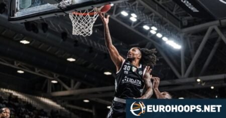The Blazers alter their approach on the next trip, this time opting for an early post-up for Grant against Vince Williams Jr. Grant works quickly, spinning to his left … only to see Edey meeting him at the rim. Grant tries to wrap a pass around Edey, but a turnover ensues.