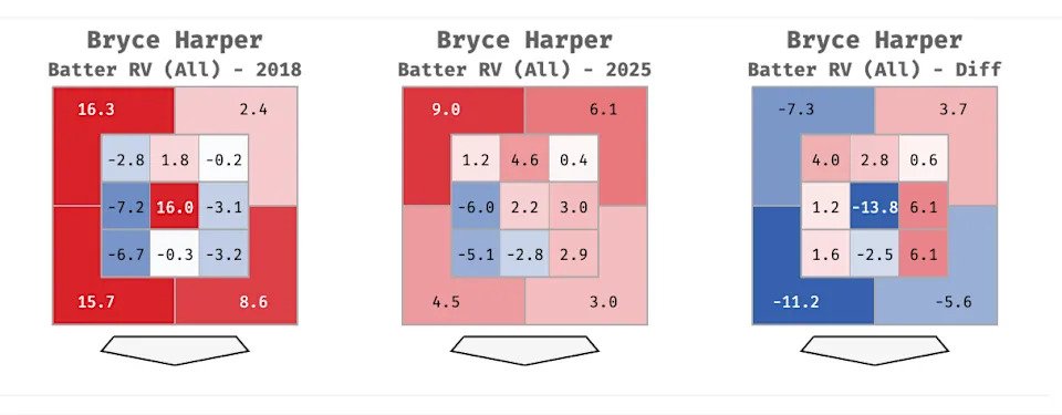 Is that worth it? Well, nostalgia can’t be quantified, but run value can. And we can say that 2018-Harper was more productive than 2025-Harper by that measure.