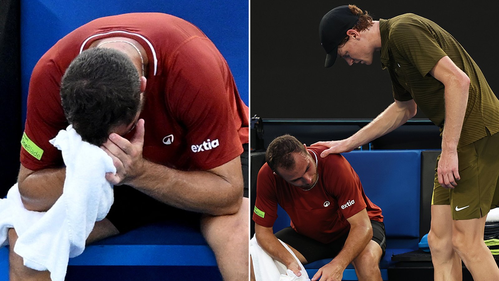 JANNIK SINNER consoled Hugo Gaston as the Frenchman was forced to retire from their Australian Open round one clash.