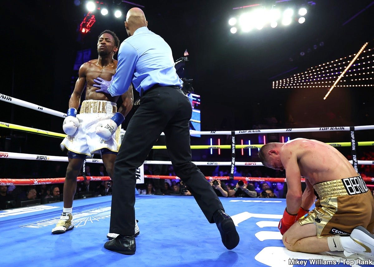 The punch was debilitating, as Berinchyk fell to his knees and failed to beat the count. As a result of the knockout victory, Keyshawn Davis won the WBO lightweight strap.