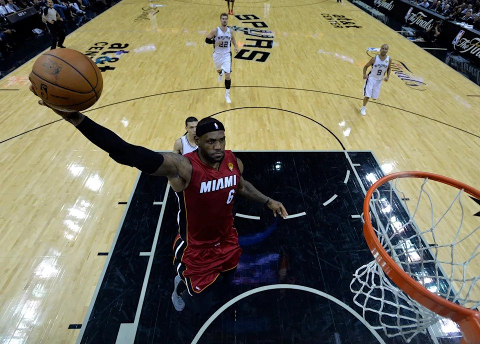 June 5, 2014: LeBron James (6) dunks the ball during the first quarter against against the San Antonio Spurs in Game 1 of the 2014 NBA Finals at AT&T Center.