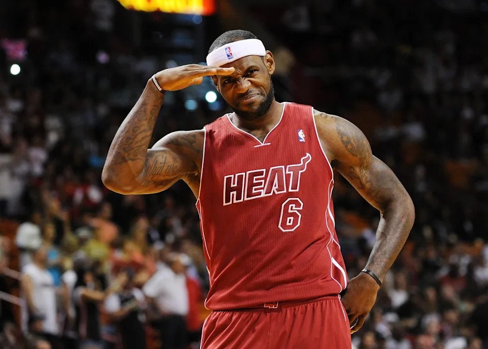 LeBron James #6 of the Miami Heat greets fans as he is introduced during a welcome party at American Airlines Arena on July 9, 2010 in Miami, Florida.