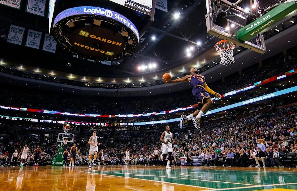 Nov 14, 2014: LeBron James (23) dunks the ball against the Boston Celtics during the first half at TD Garden.