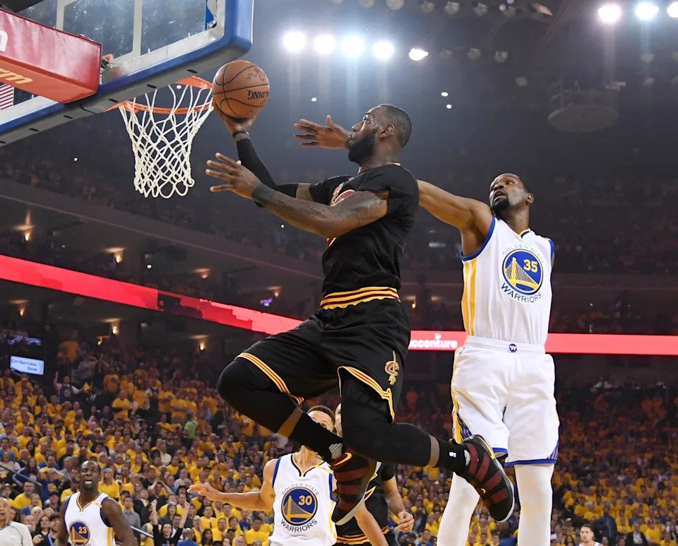 June 12, 2017: LeBron James goes up for a layup over Kevin Durant during Game 5 of the NBA Finals against Golden State.