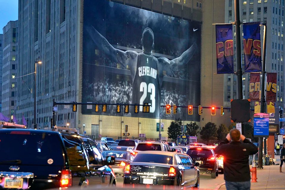 Oct 30, 2014: Traffic backs up outside of Quicken Loans Arena where a new LeBron James mural was installed.