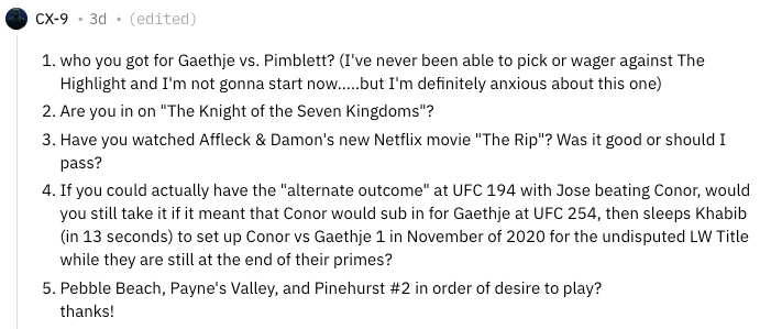 It’s that time of the week, y’all! You’ve got questions, I’ve got answers. So let’s chat about UFC 324, MMA referees, and UFC double champs.