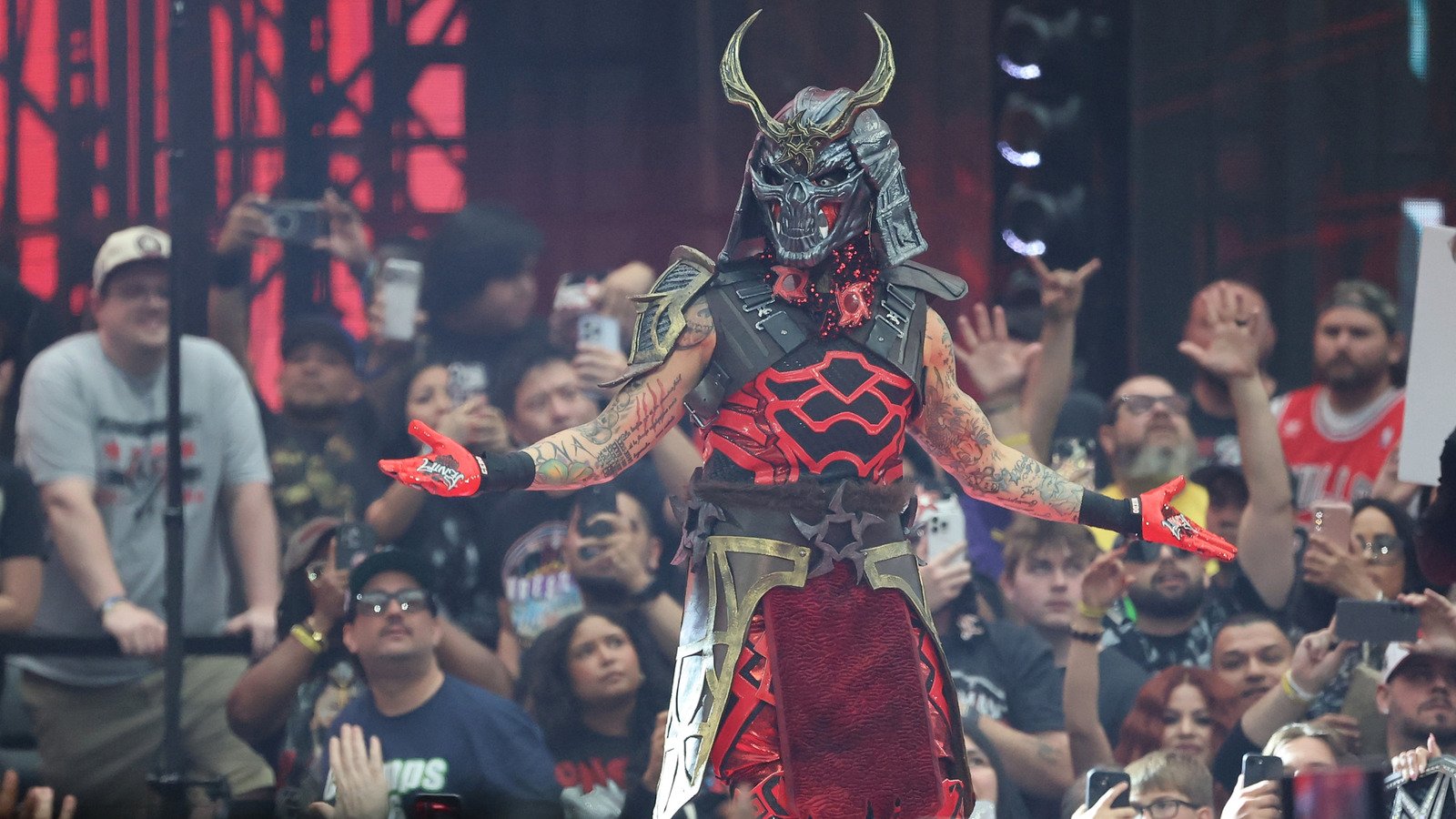 JD McDonagh, Rusev, and Dragon Lee had each made their entrances during the commercial break, with Rey Mysterio entering first on broadcast with gear inspired by Marvel’s “Deadpool.” Je’Von Evans made the next entrance in gear akin to Kofi Kingston, and Intercontinental Champion Penta entered in gear inspired by “Shao Kahn” from “Mortal Kombat.”