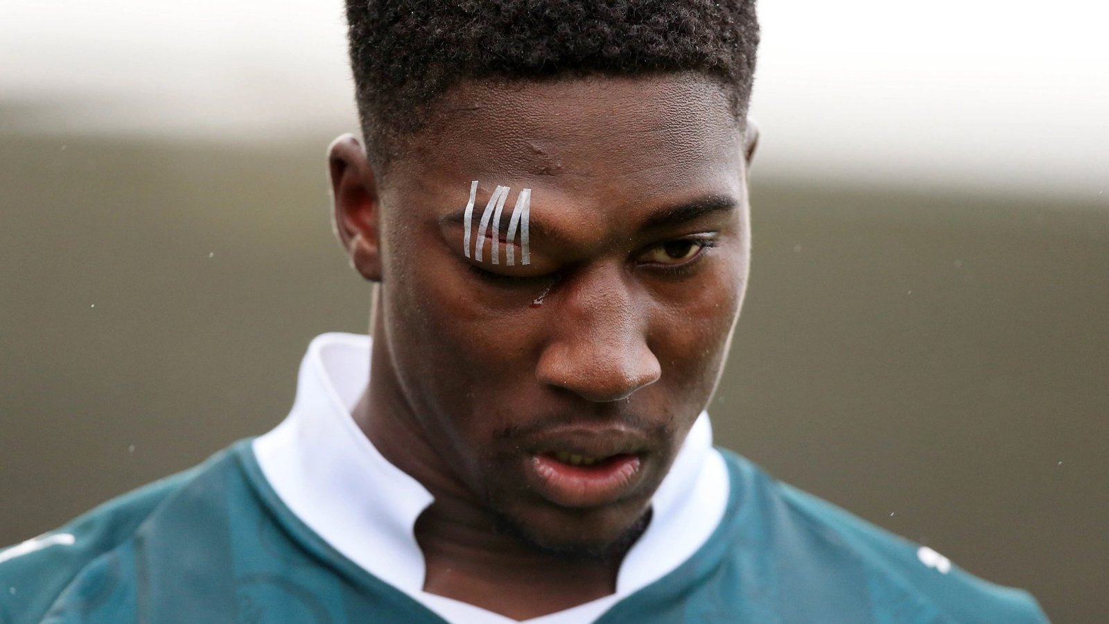 As the 23-year-old was replaced by Owen Oseni, his eye could be seen completely swollen shut.