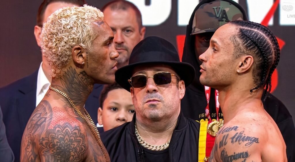 The face-off suggested something different. Standing face-to-face, Prograis, 37, looked the smaller man, with Benn appearing broader through the shoulders and thicker across the frame even before rehydration. The difference was noticeable on stage, not subtle.