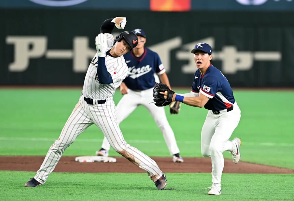 Down 8-6 with two outs in the eighth inning, Kim batted with the bases loaded but struck out looking in Korea’s last threat of the game.