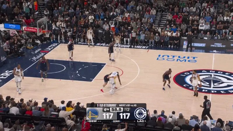 Showing an incredible refusal to be dictated by the Clippers’ after-timeout (ATO) play (in the sense that the Clippers wanted to draw Green away from Leonard courtesy of a screen), Green tenaciously fights over the screen, pins Leonard against the sideline, and intercepts a pass that was meant for Leonard, leading to an and-1 layup by Brandin Podziemski: