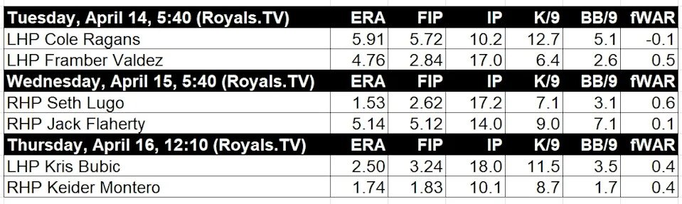 Framber Valdez was the big off-season signing for the Tigers, and the two-time All-Star has the fifth-most fWAR by a starting pitcher since 2022. He throws a sinker half the time, inducing a groundball rate of 59 percent last year. Bobby Witt Jr. is 2-for-20 in his career against Valdez with five strikeouts.