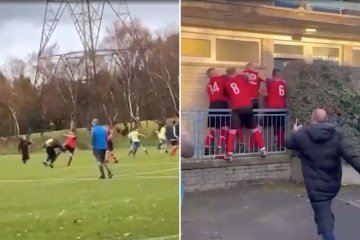 Moment brawl erupts on footie pitch before punches thrown outside changing rooms