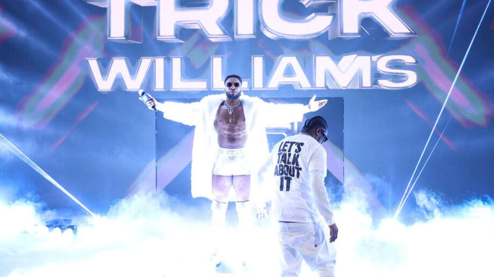 Williams rolled to the ropes, where Yachty met him to give him a pep talk, but Zayn got out of the ring and took the rapper out before bouncing him off the barricade. He directed his attention back to his challenger and drove Williams into the ring post before hitting a Brainbuster on the ring apron.