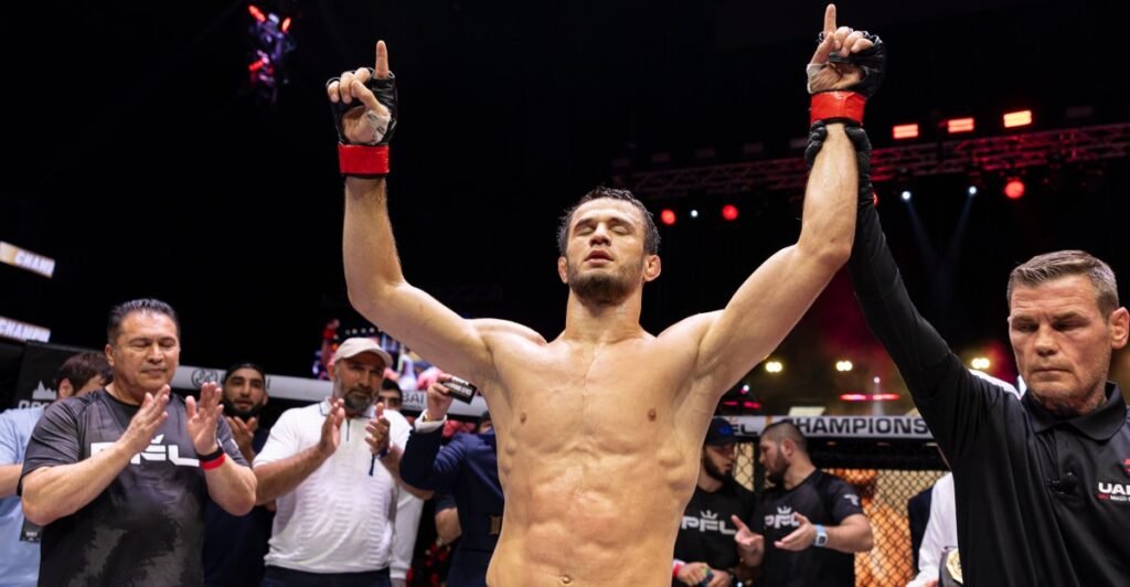 “Of course, I’m happy,” Nurmagomedov said. “I’m a champion in PFL. There is a very good staff, there is good people and I’m so happy with them. We have a good relationship with PFL and a very kind relationship. I can be a star in PFL, too.