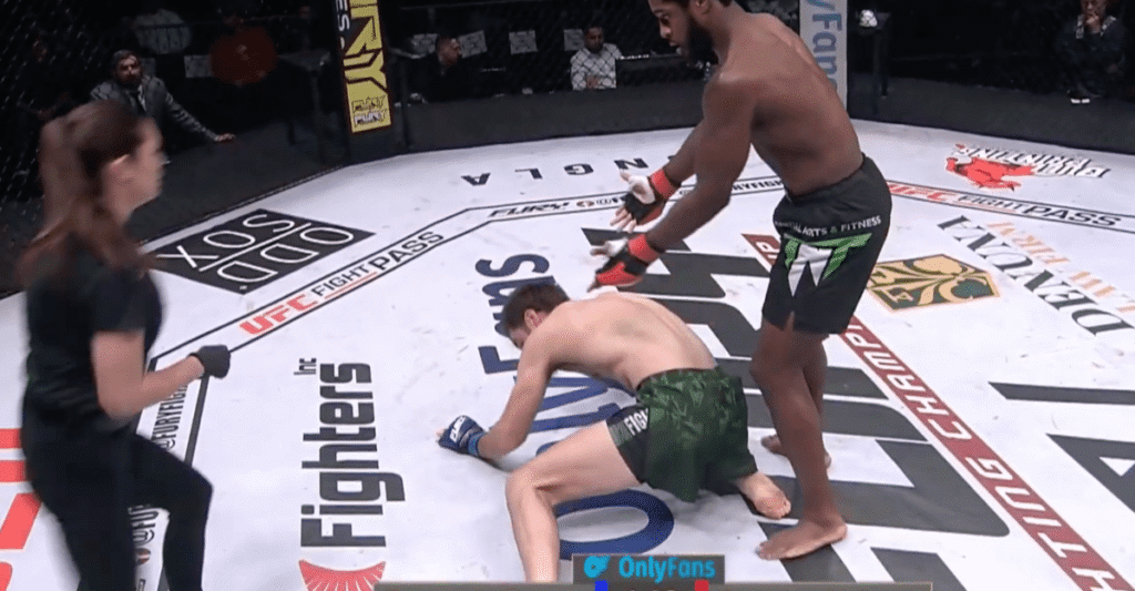 Though the maneuver didn’t knock LaGrange out cold, he was visibly hurt and disoriented. Commentators Alex Morono and Michael Alexander immediately declared LaGrange to be knocked out, but referee Danielle Guevara didn’t step in for the stoppage.