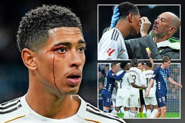 Bellingham left with blood pouring down face as 3 sent off in wild Madrid loss